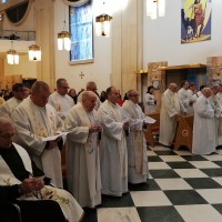 V četrtek, 2. januarja 2020 smo se v samostanu sv. Petra in Pavla na Ptuju bratje slovenske minoritske province tradicionalno že 48-ič srečali s svojimi starši in ožjimi sorodniki na božično novoletnem srečanju. Kot je že običajno, smo ga začeli s slovesno sv. mašo ob 10. uri, ki jo je vodil provincialni minister p. Igor Salmič. Neposredno ob provincialu sta somaševala jubilanta, p. Janez Ferlež in p. Vito Muhič, ki bosta to leto praznovala srebrno obletnico svojih slovesnih zaobljub. Na začetku nagovora je provincial lepo pozdravil tudi ostale brate, ki v tem letu praznujejo svoje obletnice življenja. Pri nagovoru je najprej spomnil na pričujoče jaslice, ki z vzporednim sporočilom opozarjajo na 1950-letnico pisne omembe rimskega mesta Ptuja (Petovione) ter prihoda krščanstva na Ptuj, ki je v svojem času prav tako imelo svojega pomembnega moža, škofa in mučenca sv. Viktorina Ptujskega. Njegova pridiga je izpostavila še vlogo svete nazareške družine. Z rojstvom svojega Sina v sveti družini je Bog na nek način posvetil vse družine. V sv. družini s svojo držo izstopa tudi sv. Jožef, ki opozarja na pomembnost vloge očeta za vse čase.