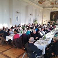 Po sv. maši smo srečanje nadaljevali pri skupni mizi v refektoriju samostana. Provincialni minister nas je pred kosilom nagovoril ter naredil kratko refleksijo pomembnejših dogodkov preteklega leta, obenem pa nas opozoril na nekatere prihajajoče, ki se bodo zgodili v letu 2020. Med pomembnejšimi bo zagotovo duhovni kapitelj slovenske minoritske province, ki ga načrtujemo v novembru 2020.