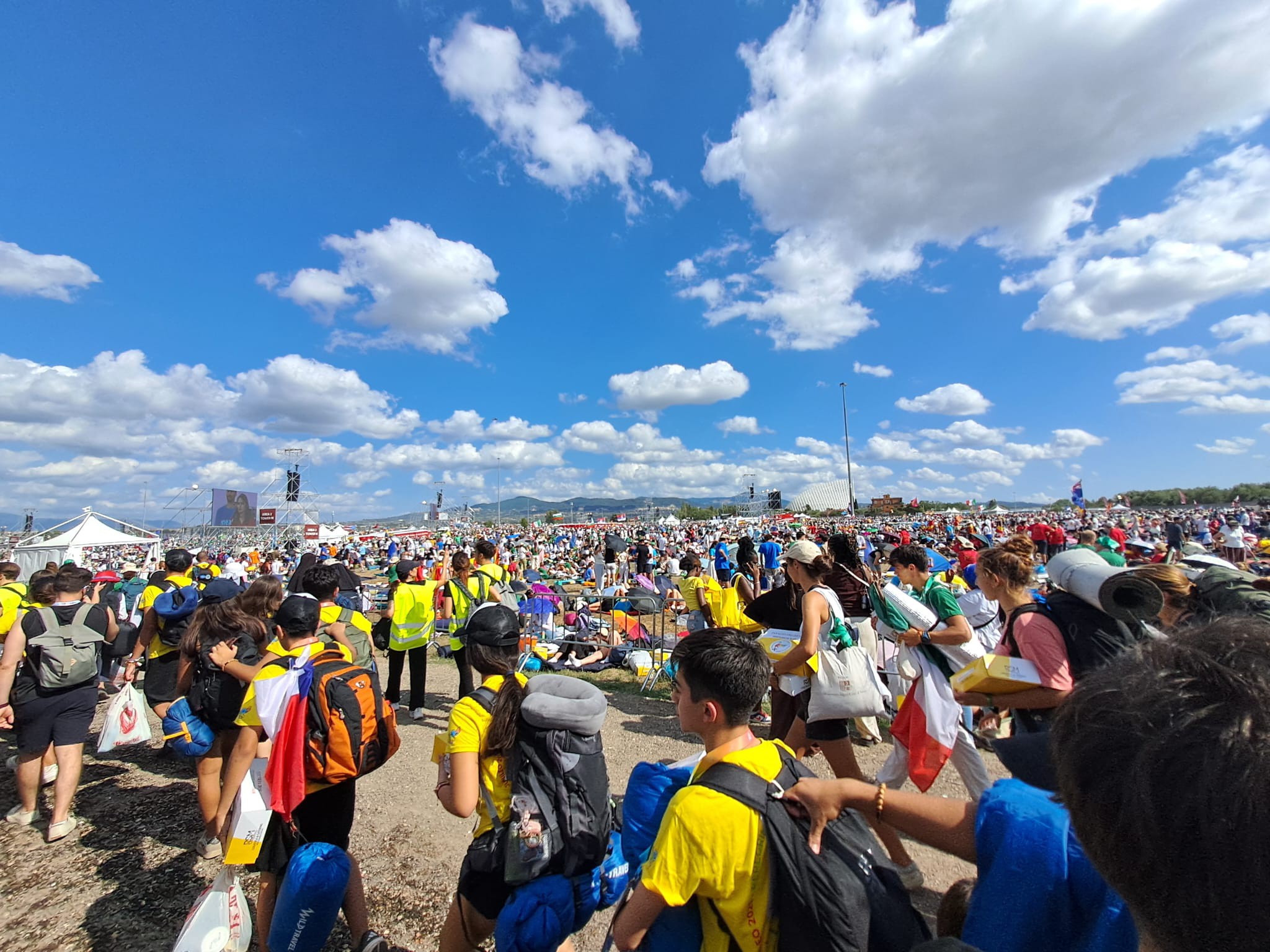 Gospodov dan - za nas romarje upanja, na jubileju mladih v Rimu, je bil današnji dan velik praznik in vrhunec našega romanja. Ob 9.00 uri smo skupaj s svetim očetom, papežem Leonom XIV., na posestvu kampa Tor Vergata obhajali nedeljsko sveto mašo. Kot je papež dejal ob pozdravu pred mašo, smo se zbrali k največjemu obhajanju naše vere, daritvi Gospodove večerje. Med sveto mašo smo prisluhnili Božji besedi 18. nedelje med letom, nato pa nagovoru svetega očeta v katerem je dejal, da je evharistija zakrament popolne daritve in nas spomnil na odlomek o učencih na poti v Emavs, ki nas spremlja že ves teden. Kako sta se učenca, že brez vsakega upanja, srečala z vstalim Kristusom, poslušala njegovo besedo in ga prepoznala po lomljenju kruha. Na koncu nas je papež spodbudil: »Stremite k velikim stvarem, k svetosti, kjerkoli že ste. Ne zadovoljite se s čim manjšim.«